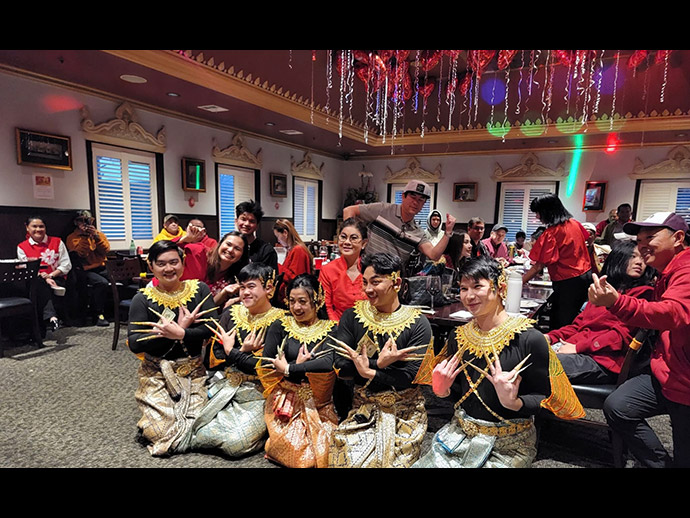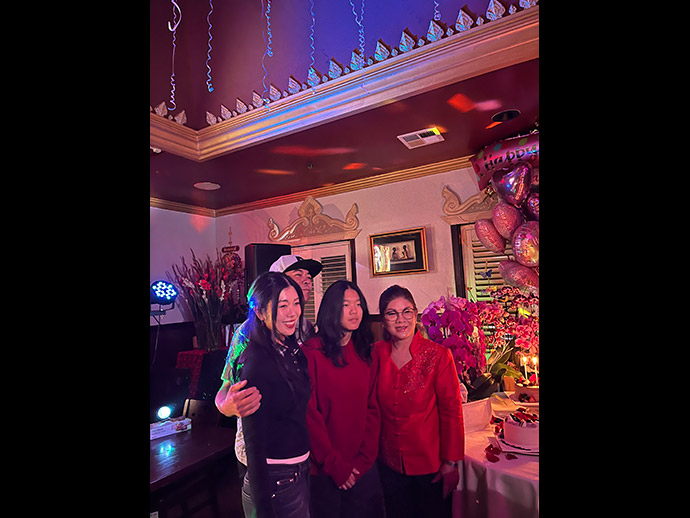 ณ ห้องอาหารนิวกรุงไทย เมืองซาน โฮเซ่ รัฐแคลิฟอร์เนีย ของน้องคนงามและใจงามยิ่งในกลุ่มพวกเรา คุณแอ๊ว-ประภา ศิริภักดิ์ น้องคนนี้เขาจัดพิธีไหว้เจ้าและเลี้ยงลูกน้อง รวมทั้งเชิญชวนเพื่อนพ้องน้องพี่ไปร่วมงานเป็นประจำทุกปี และปีนี้ก็บังเอิญตรงกับวันเกิดของคุณแอ๊วด้วย การฉลองก็ยิ่งมีความหมายเพิ่มขึ้นอีกเท่าตัว