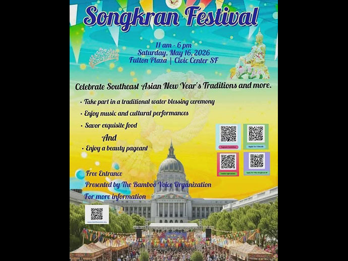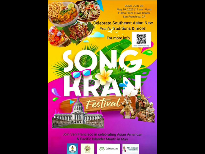ฉบับนี้ขอประชาสัมพันธ์งานฉลองตรุษสงกรานต์อีกงานหนึ่งนะคะ เป็นงานที่จะจัดขึ้นโดย The Bamboo Organization ร่วมกับ สมาคมไทยแห่งแคลิฟอร์เนียภาคเหนือ และ ชมรมคนไทยใน San Francisco & Bay Area โดยงานนี้จะมีขึ้นใน วันอาทิตย์ที่ 16 พฤษภาคม ค.ศ. 2569 ซึ่งไม่เพียงจะเป็นงานฉลองตรุษสงกรานต์ของไทยเท่านั้น แต่ถือเป็นโอกาสฉลองชุมชน Southeast Asian ในเดือนเดียวกับที่ทางการในอเมริการ่วมกันฉลอง Asian American and Pacific Islander Heritage Month ในเดือนพฤษภาคมด้วย