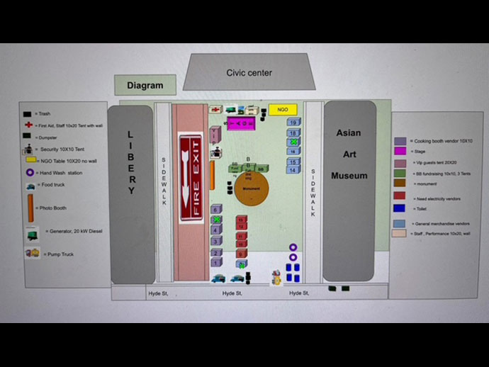 สถานที่จัดงานคือหน้าซิตี้ฮอลของนครซานฟรานซิสโก Fulton Plaza, Civic Center – San Franciscoงานเริ่มเวลา 11.00 a.m. จนถึง 6.00 p.m. งานนี้เปิดให้ผู้สนใจจะออกบูธขายของโดยมีโปรโมชั่นพิเศษ สำหรับผู้ที่จองก่อนวันที่ 31 มีนาคม 2569 Booth มีจำนวนจำกัด จองก่อนมีสิทธิเลือกเมนูก่อน