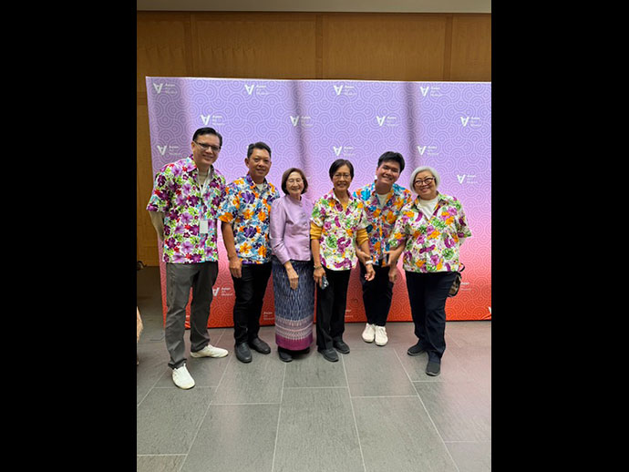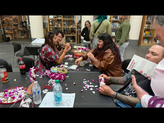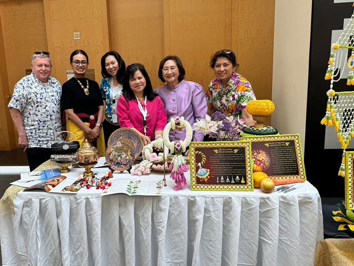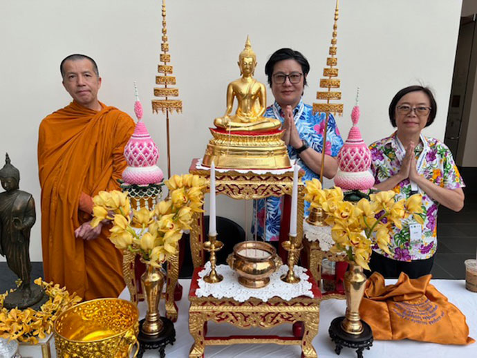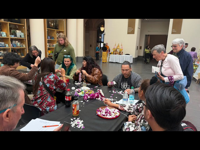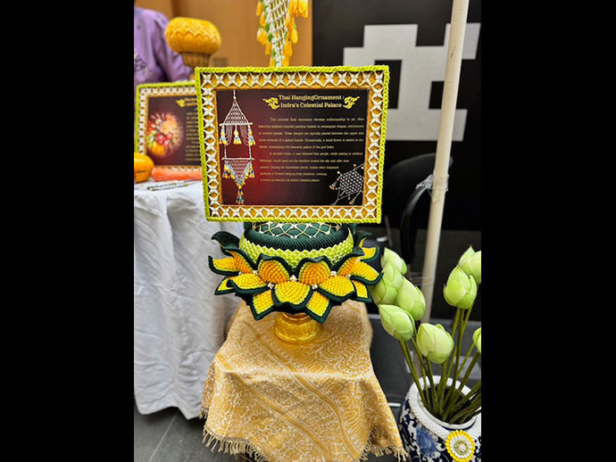 การแสดงนิทรรศการวันนั้นประกอบด้วย โต๊ะหมู่บูชา สาธิตการสรงน้ำพระ สาธิตร้อยมาลัย