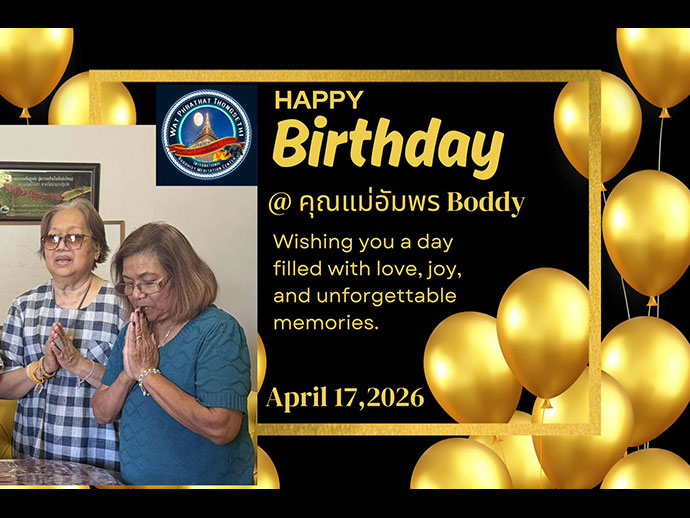 - ร่วมบุญมหาสงกรานต์ประจำปี 2569 ในวันอาทิตย์ที่ 19 เมษายน เสริมบารมี เสริมความมั่นคง มั่งมีศรีสุขสดใส เบิกบานใจถ้วนหน้า