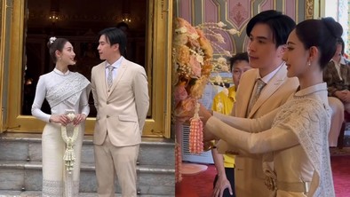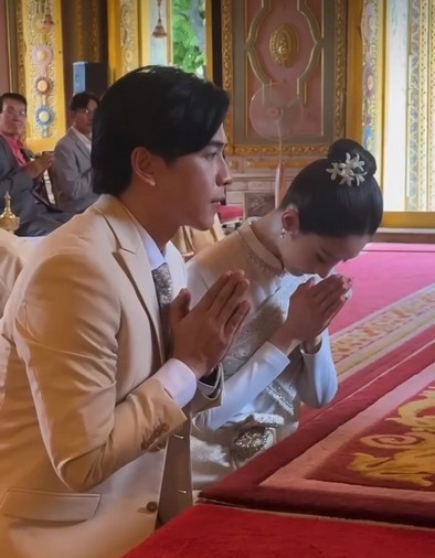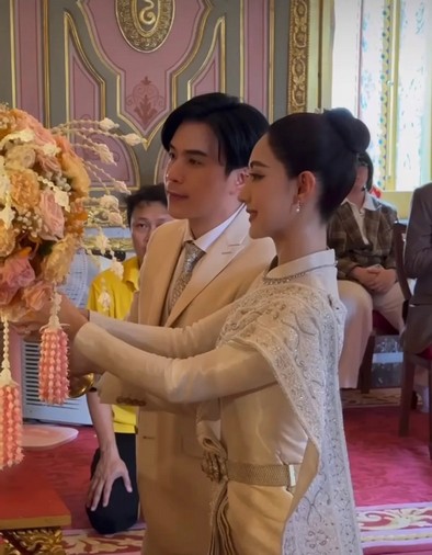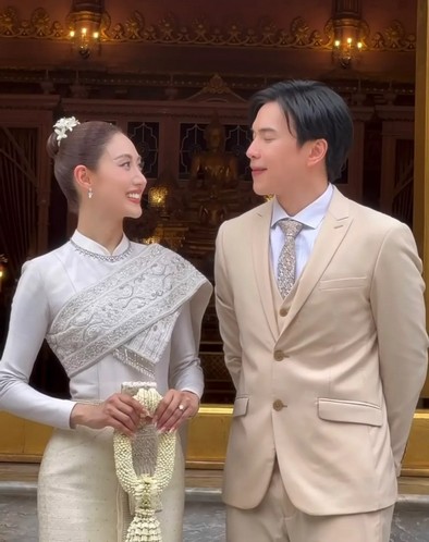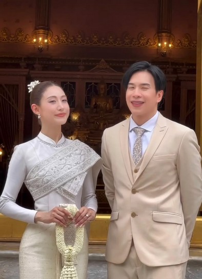 ล่าสุดเมื่อวานนี้ (27 พฤษภาคม 2567) เจ้าบ่าวเจ้าสาวได้ถือฤกษ์ดีพร้อมหน้าครอบครัวเข้าพิธีแต่งแบบไทย ทำบุญตักบาตรที่วัดดังในกรุงเทพฯ โดยโพสต์นี้ทั้งคู่ได้เขียนแคปชั่นว่า "นับต่อจากนี้ไปจนนิรันดร์"