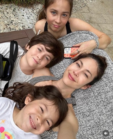 สภาพจิตใจตอนนี้แฮปปี้มาก และเด็กๆ อยู่ในช่วงที่ต้องปรับตัว ชีวิตคุณแม่เหนื่อยตลอดไป ไม่มีเบรกเป็นแม่แล้ว การเป็นคุณแม่ 24 ชั่วโมงต้องทำให้ได้ กลับมาไทยตอนนี้ได้เจอกับเพื่อนๆ แก๊งนางฟ้าเกือบครบแล้ว แถมยังคัมแบ็กผลงานการแสดงในรอบ 10 ปี ด้วย"