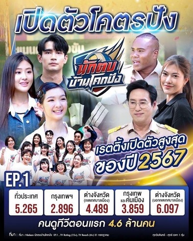 ฟาก “ละครเย็น” ก็ประสบความสำเร็จ ครองใจผู้ชมทั่วประเทศ มาอย่างต่อเนื่อง ด้วยมวลความสนุก ครบรส หลากหลายแนว จนโดนใจแฟนละครทุกเพศทุกวัย อย่างละคร“ดั่งธรณี” ที่รวมนักแสดงท็อปสตาร์ นิว วงศกร,ไผ่ พงศธร, ต่าย อรทัย จนกลายเป็นละครกระแสดี กระแสแรง แบบไม่มุสาวาปึ้ง!! และที่เพิ่งลาจอไปแบบสดๆ ร้อนๆ “นางฟ้ากรรมกร” ที่ก่อสร้างความสุข ทัชใจแฟนๆ ทั่วประเทศ จนขึ้นแท่น “ละครเย็นที่เรตติ้งสูงที่สุด 2567” ด้วยเรตติ้งทั่วประเทศ : 6.949 และล่าสุดละครที่กำลังออกอากาศให้แฟนๆ ได้รับชมกัน “นักตบบ้านโคกปัง” แค่เปิดตัวเรตติ้งก็โคตรปัง!! ตั้งแต่อีพีแรก กวาดเรตติ้งทั่วประเทศ : 5.265 ขึ้นแท่น “ละครเย็นเปิดตัวสูงสุดของปี 2567” และมาร่วมส่งแรงเชียร์ แรงใจ ให้เหล่านักตบแห่งบ้านโคกปัง เสิร์ฟลูกตบเริ่ดๆ จนต้องอึ้งพร้อมกัน เวลา 1 ทุ่มตรง ทุกวันจันทร์-ศุกร์