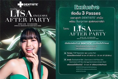 เดนทิสเต้ พร้อมมอบ “สิทธิพิเศษ” สุด Exclusive ด้วยการจัดเต็ม 3 Passes เพื่อเข้าชม 3 กิจกรรมหลัก แบ่งเป็น Sound Check, งาน DENTISTE’ Presents LISA Fan Meetup in Asia 2024 – Bangkok และฟินกับ Surprise สุดพิเศษจากลิซ่า ในงาน DENTISTE’ x LISA Exclusive After Party สำหรับลูกค้าเดนทิสเต้ที่ร่วมสนุกรวมทั้งสิ้น 1,875 สิทธิ์ โดยแฟนๆ ลิซ่า และลูกค้าสามารถร่วมสนุกได้ง่าย ๆ ลุ้นเป็น Top Spenders และ Lucky Fans เพื่อรับ 3 Passes เมื่อซื้อผลิตภัณฑ์ DENTISTE’ ตามเงื่อนไขที่กำหนดจากร้านค้าที่ร่วมกิจกรรมเท่านั้น และสามารถพรีออเดอร์ Premium Box Sets ได้แก่ Dentiste’s VVIP Box Set, Dentiste’s VIP Box Set และ Dentiste’s Green Set และรับ 3 Passes ได้ตั้งแต่วันนี้จนถึง 31 ตุลาคม 2567 นี้เท่านั้น