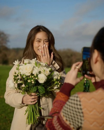 ซึ่งโมเมนต์ที่ "หนุ่มเป้ก" คุกเข่าขอแฟนสาว"เพลง" แต่งงานนั้นเรียกว่าโรแมนติกน่ารักอย่างมาก ทั้งบรรยากาศโดยรอบ รวมถึงธีมเสื้อผ้าที่ทั้งคู่ได้สวมใส่ รวมถึงแหวนเพรชเม็ดโต ที่หนุ่มเป้ก สวมไว้ที่นิ้วนางข้างซ้ายของ "เพลง ชนม์ทิดา"