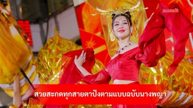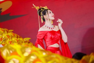 ต้อนรับปีงูไฟฉลองเทศกาลตรุษจีน ในชุดฮั่นฝูอาภรณ์สไตล์จีนโบราณ ปรากฏกายพร้อมขบวนสิงโตมหามงคล ลอดท้องมังกรทองเพื่อความเป็นสิริมงคล รับความเฮงปีมะเส็ง ในชุดมาสเตอร์พีซโดดเด่นด้วยเครื่องหัวทองคำทำจากทอง 99.9% ผ่านกระบวนการผลิตพิเศษ สีสันโดดเด่น ประดับด้วยเปลือกหอยมุกสีต่างๆ และปิ่นทองคำแท้ 96.5 % เพิ่มความสง่างามอันไร้ที่ติด้วย สร้อยคอล้อมอัญมณีสุดเลอค่า ต่างหู และแหวนทับทิม ประดับด้วยพลอยทับทิมทรงหยดน้ำและเพชร ซึ่งช่วยเติมเต็มความสวยงามให้สมบูรณ์แบบด้วยความระยิบระยับราวดวงดาว งานศิลป์ที่เปี่ยมด้วยความประณีตและความหรูหราที่สมบูรณ์แบบ ได้รับแรงบันดาลใจมาจากหงส์และดอกเหมย อันเป็นสัญลักษณ์มงคลของชาวจีน