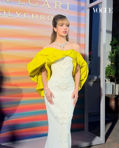 ไฮไลท์ของลุคนี้อยู่ที่สร้อยคอ BVLGARI High Jewelry รุ่น Serpenti Sunburst จากคอลเล็กชั่น Polychroma ซึ่งประดับด้วยเพชรสีเหลืองระดับ Fancy Intense Yellow ถึง 5 เม็ด โดยเม็ดที่ใหญ่ที่สุดมีขนาดถึง 5.52 กะรัต และใช้เวลารังสรรค์กว่า 1,200 ชั่วโมง ความงดงามและรายละเอียดอันประณีตของจิวเวลรีชิ้นนี้ ผสมผสานกับลุคที่สมบูรณ์แบบของลิซ่า ทำให้เธอดูสวยเลอค่าราวกับเจ้าหญิง สร้างความประทับใจให้กับผู้ร่วมงานและแฟนๆ ทั่วโลก