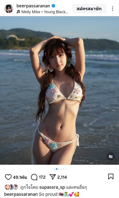 ทำเอาอินสตาแกรมแทบลุกเป็นไฟ! เมื่อ "เบียร์ ภัสรนันท์ อัษฎมงคล" หรือที่รู้จักกันดีในนาม Beerpassaranan ศิลปินสาวหน้าหวาน เจ้าของเสียงใสที่ใครๆ หลงรัก ได้ปล่อยภาพเซตสุดแซ่บขณะเที่ยวพักผ่อนริมชายหาด