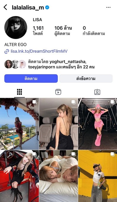 อันดับหนึ่งยังคงเป็นของ “ลิซ่า ลลิษา มโนบาล” สมาชิกวง BLACKPINK ที่ยอดผู้ติดตามบนอินสตาแกรมส่วนตัว @lalalalisa_m พุ่งทะยานสู่ 106 ล้านคน อย่างน่าทึ่ง ไม่เพียงแค่ครองแชมป์ในไทย แต่ยอดฟอลโลเวอร์ของเธอยังเป็นอันดับต้นๆ ของโลก สะท้อนให้เห็นถึงอิทธิพลและความนิยมที่ไร้พรมแดน