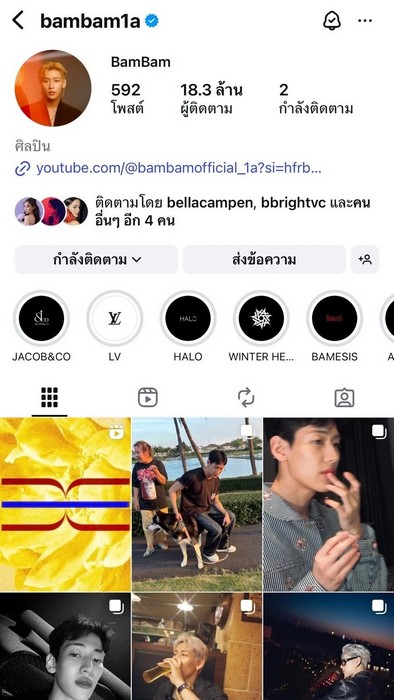ในอันดับที่สองคือ “แบมแบม กันต์พิมุกต์ ภูวกุล” ศิลปินเคป๊อปชื่อดังจากวง GOT7 ที่บัญชี @bambam1a มีแฟนๆ ติดตามกว่า 18.4 ล้านคน ซึ่งแสดงให้เห็นถึงความผูกพันและแรงสนับสนุนจากแฟนคลับทั่วโลกที่เหนียวแน่น.