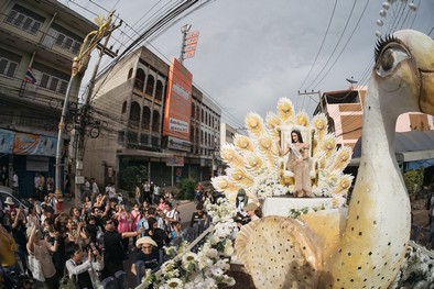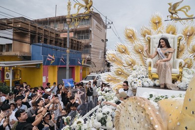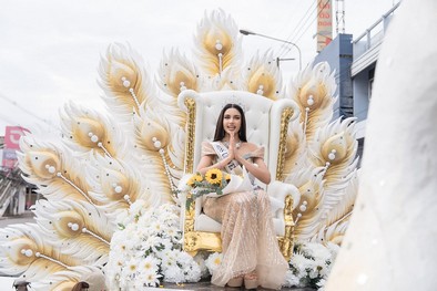 ซึ่งขบวนแห่ความภาคภูมิใจของชาวสระบุรีที่ร่วมใจกันมาเพื่อ วีนา ปวีนา ครั้งนี้ ประกอบด้วย ขบวนนางรำนับร้อยชีวิตที่มาพร้อมกับชุดสีชมพูสดใสร่วมรำประกอบเพลง วีนา โสภาวิลาวรรณ ตามมาด้วย วงโยธวาทิตจากโรงเรียนสระบุรีวิทยาคม ,ทีมนางงามสระบุรี อาทิ มะปราง สุนทรี , เฟิร์น ยุวภรณ์ , ฟ้าบาร์บี้ และอีกมากมาย โดยไฮไลท์ของขบวนรถของ วีนา นั้นถูกเนรมิตให้เป็นบัลลังค์ขนนกยูงขาว ซึ่งเป็นสัญลักษณ์ของความบริสุทธิ์ ความสง่างาม ความกล้าหาญ ที่สะท้อนตัวตนของ วีนา ออกมาได้อย่างสมบูรณ์