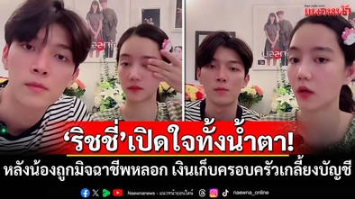 วันอังคาร ที่ 9 กันยายน พ.ศ. 2568:นางเอกสาวชื่อดัง “ริชชี่ อรเณศ ดีคาบาเลส” ไลฟ์เปิดใจทั้งน้ำตา หลังเพิ่งทราบว่าน้องชายแท้ๆ ถูกหลอกโดยมิจฉาชีพ สูญเงินของครอบครัวไปกว่า 800,000 บาท จนบัญชีของแม่เหลือเงิน 0 บาท พร้อมเตือนภัยให้หลายคนระวัง