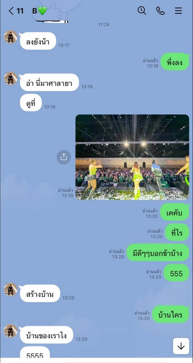 ซึ่งเนื้อหาในแชทไลน์ที่ บิ๊ก ได้บอกกับจ๊ะว่าตนเองได้เดินทางไปที่ศาลายา เพื่อดูที่สร้างบ้านสำหรับทั้งคู่ ทำเอาสาวจ๊ะถึงกับบอกว่า “อย่าตลก” แต่บิ๊กกลับย้ำว่า “ไม่ตลก ดูจริงๆ” และทิ้งท้ายคำหวานว่า “เดี๋ยวให้พ่อไปขอ รอแป๊บนึง”