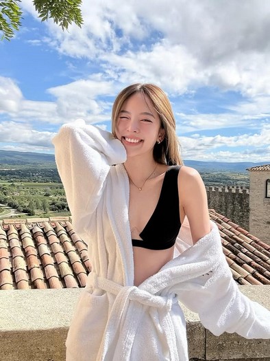 ณิชาเลือกแมตช์ชุดซีทรูโทนสีอ่อนกับบิกินี่สีดำสุดคลาสสิก เพิ่มความคอนทราสต์และโดดเด่นในเวลาเดียวกัน พร้อมเมกอัพโทนนู้ดเผยผิวใสแบบธรรมชาติ แต่ยังคงความหรูหราและดูแพงทุกองศา เรียกว่าเป็นอีกลุคที่สะท้อนเสน่ห์ในแบบของเธอได้ชัดเจนสุดๆ