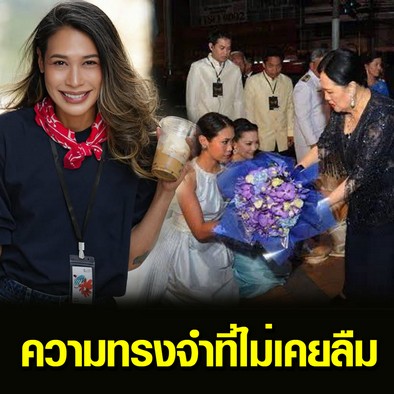 “นี่ก็นั่งรถตู้ไปพร้อมท่าน ไปถึงค่ำๆก็ไปนั่งโต๊ะ จำไม่ค่อยได้แล้วว่ามีนักแสดงคนไหนไปบ้าง น่าจะมีคุณแอฟ กับพี่ปีเตอร์ด้วย ตอนนั้นพี่เบิร์ดกับพี่ต๊อดท่านยังไม่ได้เลือกว่าจะให้เล่นบทไหน เราก็เลือกเก้าอี้นั่งไปงงๆ เพราะเขาไม่ได้กำหนดที่ ปรากฏว่าพอสมเด็จท่านเสด็จลงมานั่งโต๊ะ ก็อยู่ตรงข้ามที่นั่งเราพอดี ทั้งเกร็งทั้งเงอะงะ ไม่กล้าเงยเท่าไหร่ แต่อาหารอร่อยมาก จำได้ว่ามีเมนูก๋วยเตี๋ยวแก้มหมูตุ๋นที่อยากกินอีก แต่ไม่กล้าขอ”