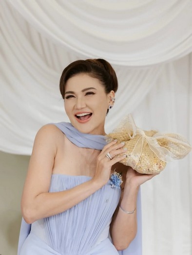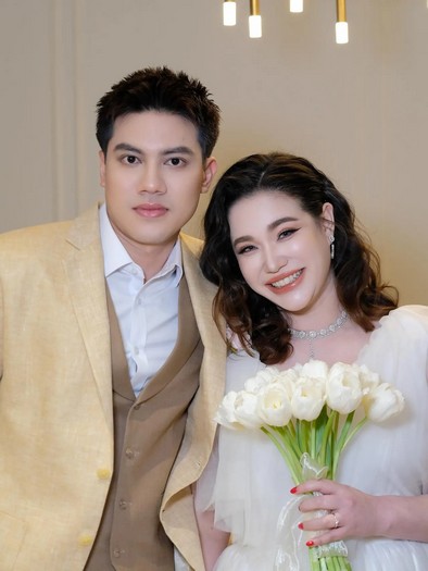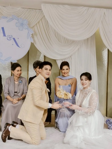 ที่ว่าที่เจ้าตัวอยู่ในชุดแต่งงานสีขาวสุดคลาสสิก กระโปรงยาวลากพื้น ในขณะที่แฟนหนุ่มดูหล่อเท่ในชุดสูทสีดำ ประดับด้วยดอกไม้สีขาวบนเสื้อสูท หลายคนที่ได้เห็นภาพดังกล่าวต่างร่วมแสดงความยินดีจำนวนมาก