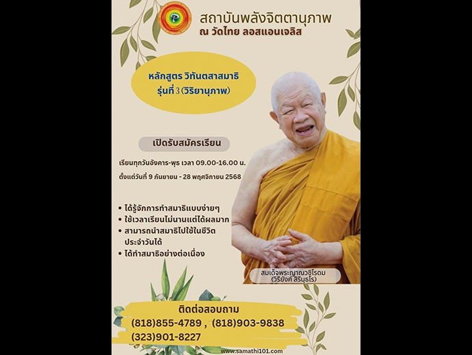 วัดไทยลอสแองเจลิส จึงขออนุโมทนาบุญมายังผู้บริจาคทั้งในประเทศไทย และสหรัฐอเมริกาและผู้ให้การสนับสนุนโครงการทุกๆ ท่านมา ณ โอกาสนี้ ……..* วัดไทยธรรมจาริกสังฆวิหาร ขอบอกบุญ เชิญชวนผู้ใจบุญทุกท่าน ร่วมงานบุญงานกุศล ภายใต้ชื่องานว่า “ดีจังการกุศล” ในวันศุกร์ที่ 3 ตุลาคม 2568 ที่จะถึงนี้ ตั้งแต่เวลา 05.00 PM- 10.00 PM ที่ Alicia Senior Center 11300 Glenoaks Blvd, Pacoima, 913231……..* บัตรเข้าร่วมงาน ราคา $45 และ $50 พบกับดนตรีคณะ
