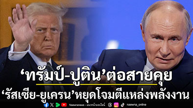 19 มี.ค. 2568 สำนักข่าวรอยเตอร์ รายงานข่าว Putin agrees to 30-day halt on energy facility strikes but no full Ukraine ceasefire ระบุว่า วลาดิเมียร์ ปูติน (Vladimir Putin) ประธานาธิบดีรัสเซีย รับข้อเสนอเมื่อวันที่ 18 มี.ค. 2568 โดยรัสเซียจะหยุดโจมตีโรงไฟฟ้าของยูเครนเป็นการชั่วคราว แต่ปฏิเสธที่จะรับรองข้อตกลงหยุดยิง 30 วันเต็ม ซึ่ง โดนัลด์ ทรัมป์ (Donald Trump) ประธานาธิบดีสหรัฐอเมริกา คาดหวังให้เป็นก้าวแรกสู่ข้อตกลงสันติภาพถาวร
