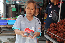 จาการสอบถามนางกรองแก้ว พัฒน์แก้ว อายุ 52 ปี แม่ค้าขายของทะเล กล่าวว่า ลูกชายตนออกไปวางอวนดักปลากระบอก แต่กลับได้ปลาหมอคางดำมาหลายตัว ประมาณครึ่งกิโลกรัม และพบว่าตัวปลาหมอคางดำมีขนาดใหญ่ ซึ่งตอนนี้จากการออกไปทำการประมงทั้งปู ปลาหมึก ก็ไม่ค่อยได้ ถ้าได้ก็ได้ในปริมาณที่น้อยลง ไม่แน่ใจว่าจะเป็นเพราะปลาหมอคางดำที่อาจจะไปกินลูกปลา ลูกปูหรือไม่