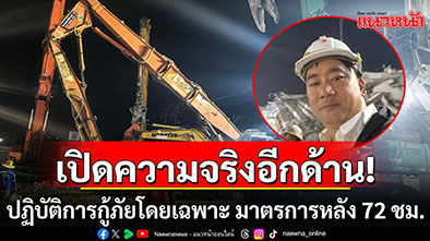 วันที่ 2 เมษายน 2568 นายแทนคุณ จิตต์อิสระ หรือ อี้ แทนคุณ ประธานชมรมสันติประชาธรรม โพสต์เฟซบุ๊กระบุว่า ความจริงอีกด้านของปฏิบัติการกู้ภัยโดยเฉพาะ มาตรการหลัง 72 ชั่วโมงไปแล้ว