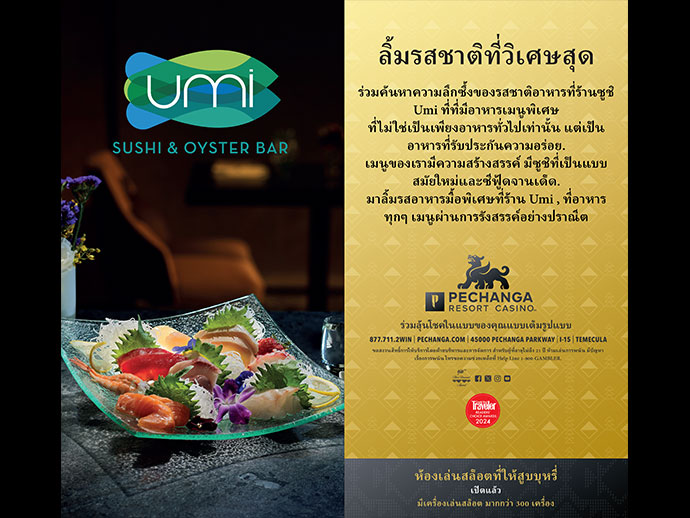 Pechanga Resort Casino เป็นรีสอร์ท/คาสิโนที่ใหญ่และกว้างขวางที่สุดในสหรัฐอเมริกา. ได้รับการโหวตให้เป็นรีสอร์ตและคาสิโนที่ดีที่สุดในอเมริกาจากนิตยสารท่องเที่ยว Condé Nast Traveler และได้รับการจัดและรีวิวให้เป็น Four Diamond Property จากบริษัท AAA ตั้งแต่ปี 2002. Pechanga Resort Casino เป็นสถานที่พักผ่อนที่หาที่ไหนไม่ได้ ไม่ว่าจะเป็นการพักผ่อนในหนึ่งวันหรือใช้เวลาพักผ่อนในระยะเวลานานมากขึ้น. Pechanga Resort Casino มีเครื่องสล็อตแมชชีนมากกว่า 5,500 เครื่อง, เกมบนโต๊ะ 152 เกม , แหล่งบันเทิงระดับโลก , ห้องพัก 1,100 ห้อง , ร้านอาหาร , สปาหรูมีระดับ และสนามกอล์ฟ Journey at Pechanga. Pechanga Resort Casino เป็นจุดหมายปลายทางที่รองรับความต้องการของลูกค้า Pechanga Resort Casino ได้รับการบริหารและอยู่ภายใต้การเป็นเจ้าของของ Pechanga Band of Luiseño Indians. ข้อมูลเพิ่มเติม สามารถโทรสอบถามได้ที่เบอร์โทรฟรี (877) 711-2946 หรือเว็ปไซค์ www.Pechanga.com. กดติดตาม Pechanga Resort Casino บนเฟสบุ๊ค อินสตาแกรม และที่ X