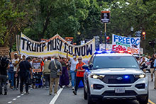 ชาวเมืองหลวงลุงแซม ก่อม็อบเดินขบวนประท้วงมาตรการปราบอาชญากรรมและกวาดล้างคนไร้บ้านของทรัมป์ ที่ส่งกองกำลังเนชันแนลการ์ดมาปฏิบัติการ แทนเจ้าหน้าที่ตำรวจนครบาลเจ้าของพื้นที่
