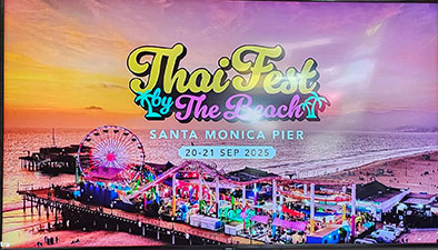 ดื่มด่ำอาหารและวัฒนธรรมไทย ริมหาดซานตาโมนิก้ากับเทศกาล Thai Fest by the Beach ที่ซานตาโมนิกา รัฐแคลิฟอร์เนีย เป็นงานวัฒนธรรมที่เฉลิมฉลองอาหารไทย วัฒนธรรม และศิลปะ จัดขึ้นที่บริเวณท่าเรือซานตาโมนิกา (Santa Monica Pier) เพื่อส่งเสริมการท่องเที่ยวและความสัมพันธ์ทางวัฒนธรรมระหว่างประเทศไทยและสหรัฐอเมริกา เป็นปีที่ 2 ปีนี้จะจัดขึ้น ในวันที่ 20 – 21 กันยายน 2025 และชุมชนไทยมีความภาคภูมิใจที่ได้เป็นส่วนหนึ่งในการร่วมฉลองครบรอบ 150 ปี ของเมือง ซานตาโมนิก้า รัฐแคลิฟอร์เนียภาคใต้ อีกด้วย