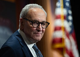 ชัค ชูเมอร์ ผู้นำเสียงข้างน้อยในวุฒิสภาสหรัฐฯจากพรรคเดโมแครต ยิ้มเล็กน้อยระหว่างการแถลงข่าวหลังการลงมติของวุฒิสภา ณ อาคารรัฐสภาในกรุงวอชิงตัน ดี.ซี. เมื่อวันที่ 30 กันยายน เพียงไม่กี่ชั่วโมงก่อนที่คำสั่งชัตดาวน์หน่วยงานรัฐบาลบางส่วนมีผลบังคับใช้ (Photo by ANDREW CABALLERO-REYNOLDS / AFP)