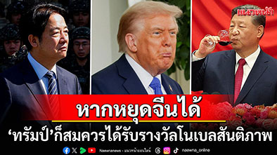 8 ตุลาคม 2568 สำนักข่าวต่างประเทศรายงานว่า ประธานาธิบดีไต้หวันไล่ ชิงเต๋อ (Lai Ching-te) ได้ออกมาให้สัมภาษณ์ในพอดแคสต์ของสหรัฐฯ แนวอนุรักษ์นิยม The Clay Travis and Buck Sexton Show ซึ่งออกอากาศเมื่อวันที่ 7 ตุลาคมที่ผ่านมา โดยอ้างถึงคำกล่าวของทรัมป์เมื่อเดือนสิงหาคมที่ระบุว่า 'สี จิ้นผิง' บอกกับเขาว่า จะไม่รุกรานไต้หวันในช่วงที่เขาดำรงตำแหน่งประธานาธิบดี โดยเขาหวังว่าจะได้รับการสนับสนุนจากประธานาธิบดีทรัมป์อย่างต่อเนื่อง หากประธานาธิบดีทรัมป์สามารถโน้มน้าวให้ 'สี จิ้นผิง' ยุติการรุกรานทางทหารต่อไต้หวันโดยถาวรได้ เขาย่อมสมควรได้รับรางวัลโนเบลสาขาสันติภาพโดยไม่ต้องสงสัย