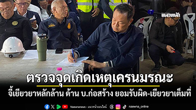 จากนั้น นายกรัฐมนตรี ได้เดินดูบริเวณที่เกิดเหตุ บริเวณจุดที่เครนหล่นใส่ขบวนรถไฟ โดยเฉพาะรถไฟตู้ที่ 2 และ 3 ที่ได้รับความเสียหายอย่างหนัก พร้อมทั้งสำรวจซากชิ้นส่วนของงานก่อสร้างรถไฟความเร็วสูงที่ตกลงมาบนรางรถไฟด้วย โดยระหว่างตรวจสอบพื้นที่ นายกรัฐมนตรีได้สอบถามถึงสัญญาการก่อสร้างว่าบริษัทใดเป็นผู้ควบคุมงาน และได้ถามหาผู้ควบคุมงานเพื่อจะสอบถามถึงสาเหตุของเหตุการณ์ที่เกิดขึ้น รวมถึงความคืบหน้าล่าสุด ซึ่งทราบว่าขณะนี้มีผู้เสียชีวิต 32 ราย และอยู่ระหว่างการค้นหา 3 ราย