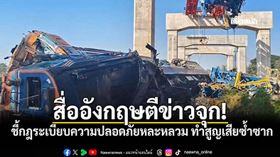 เมื่อวันที่ 14 ม.ค.2569 เพจเฟซบุ๊ก "CSI LA" ได้โพสต์ข้อความผ่านทางเฟซบุ๊ก ระบุว่า "จุกสื่ออังกฤษพาดข่าวอุบัติเหตุเครนตกใส่รถไฟในไทย ทำให้มีผู้เสียชีวิต 22 คน พร้อมบรรยายแบบตรงไปตรงมาว่า อุบัติเหตุในภาคอุตสาหกรรมและไซต์งานก่อสร้างเป็นสิ่งที่เกิดขึ้นบ่อยครั้งในประเทศไทย เนื่องจากการบังคับใช้กฎระเบียบด้านความปลอดภัยที่หละหลวม จนนำไปสู่อุบัติเหตุร้ายแรงและการสูญเสียชีวิตซ้ำแล้วซ้ำเล่า