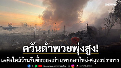 เมื่อเวลา 05.00 น. วันที่ 28 มกราคม 2569 ร.ต.ท.ณฐพล คุณารักษ์ รองสารวัตรสอบสวน สภ.เมืองสมุทรปราการ ได้รับแจ้งเหตุเพลิงไหม้ร้านรับซื้อของเก่าแห่งหนึ่ง ภายในซอยขจรวิทย์ ตำบลแพรกษาใหม่ อำเภอเมือง จังหวัดสมุทรปราการ หลังรับแจ้งจึงประสานรถดับเพลิง อบต.แพรกษาใหม่ และใกล้เคียง กว่า 10 คัน เดินทางตรวจสอบที่เกิดเหตุ