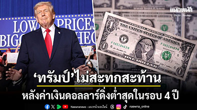 28 มกราคม 2569 สำนักข่าวต่างประเทศรายงานว่า ประธานาธิบดีโดนัลด์ ทรัมป์ ของสหรัฐฯ ได้ให้สัมภาษณ์กับผู้สื่อข่าวระหว่างการลงพื้นที่ในรัฐไอโอวา ระบุว่า ค่าเงินดอลลาร์ ดีมาก เมื่อถูกถามว่า ค่าเงินดอลลาร์อ่อนค่ามากเกินไปหรือไม่ ซึ่งคำตอบนี้ยิ่งเพิ่มแรงกดดันต่อค่าเงินดอลลาร์ที่แตะระดับต่ำสุดในรอบ 4 ปี ในขณะนี้