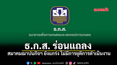 19 กุมภาพันธ์ 2569 ธนาคารเพื่อการเกษตรและสหกรณ์การเกษตร (ธ.ก.ส.) ได้ชี้แจงกรณีข่าว สมาคมฌาปนกิจสงเคราะห์ แจ้งยกเลิกการดำเนินงาน ตามที่มีการเผยแพร่ข้อมูลผ่านสื่อสังคมออนไลน์เกี่ยวกับการยุติการดำเนินงานของสมาคมณาปนกิจสงเคราะห์บางแห่ง และบางส่วนอาจมีความเชื่อมโยงกับลูกค้า ธ.ก.ส. จนอาจก่อให้เกิดความกังวลในวงกว้างนั้น