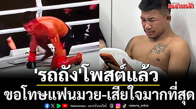 "ดิ ไอร่อนแมน" รถถัง จิตรเมืองนนท์ โพสต์ข้อความขอโทษแฟนมวยชาวไทย หลังพ่ายน็อคให้กับ ทาเครุ ในศึกมวยชิงแชมป์โลก ONE Samurai 1 ที่สนามอาริอาเกะ อารีนา กรุงโตเกียว ประเทศญี่ปุ่น คู่เอก เมื่อช่วงหัวค่ำวันพฤหัสบดี ที่ผ่านมา