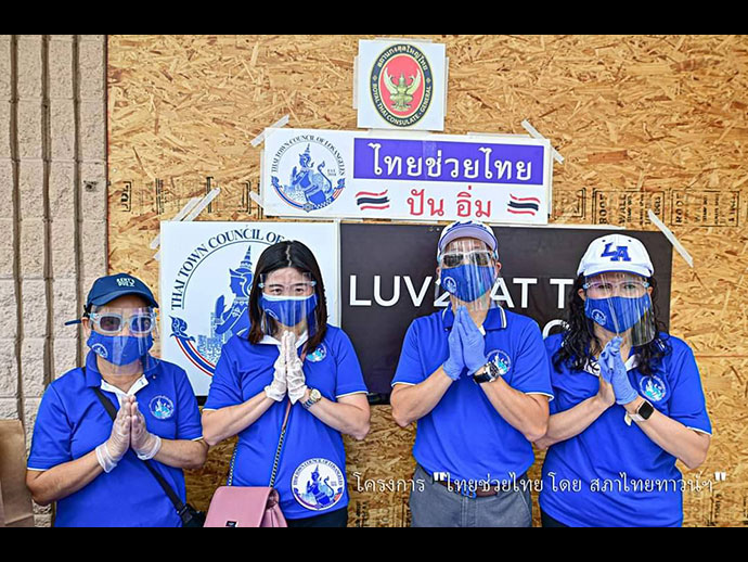 ท่านกงสุลใหญ่มังกร ประทุมแก้ว และ คุณตัน พัฒนะ นายกสภาไทยทาวน์ฯ นำทีมงานบริหารฯ ไปช่วยแจก- อาหารสด ที่ร้านอิ่มอร่อย-อาหารกล่อง CP+หน้ากากผ้า วาโก้ จากสถานกงสุลใหญ่ฯ - Face shield : สภาไทยทาวน์ฯ- ขนมครกขึ้นเขา : พี่ใหญ่ - น้ำพริกเผ็ดเว่อร์ : วรนุช – สตรอเบอร์รี่ :หญิงโย – น้ำดื่ม Kangen : วิโรจน์ จำนวน 200 ชุด