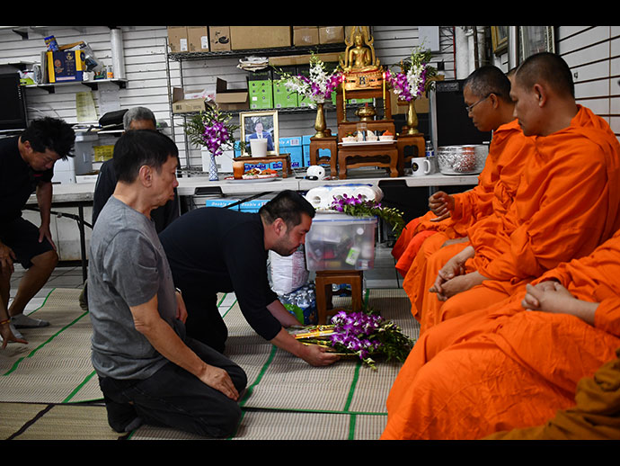 พิธีบำเพ็ญกุศล 7 วัน เมื่อวันศุกร์ที่ 5 กรกฎาคม 2567 ครอบครัว ”พลอยแสงงาม”พร้อมด้วยทีมงานผู้บริหาร แล็คซีซุเปอร์มาร์เก็ตและญาติพี่น้อง นำโดย เอนก พลอยแสงงาม ได้นิมนต์พระสงฆ์จากวัดไทยลอสแองเจลิส จำนวน 4 รูป และพระสงฆ์จากวัดป่าชิคาโก จำนวน 1 รูป ประกอบด้วย พระครูสมุห์อำพร, พระมหาดุสิต, พระณัฐพงษ์, พระมหาปภาวินและพระจิตติ ทำพิธีบำเพ็ญกุศล 7 วัน สวดเจริญพระพุทธมนต์, จัดเลี้ยงอาหารเพลแด่พระสงฆ์เพื่ออุทิศส่วนบุญส่วนกุศล เนื่องในโอกาสครบรอบ 7 วันของการจากไปของคุณ“ตุ๊” อรรณพ พลอยแสงงาม ซึ่งจะมีพิธีสวดพระอภิธรรม วันที่ 11-13 ก.ค. 67 เวลา 6.00 PM.ที่วัดไทยลอสแองเจลิส และพิธีรดน้ำศพ/ฌาปนกิจ วันอาทิตย์ที่ 14 ก.ค. 67 เวลา 1.30 PM.ที่สุสาน Hollywood Forever