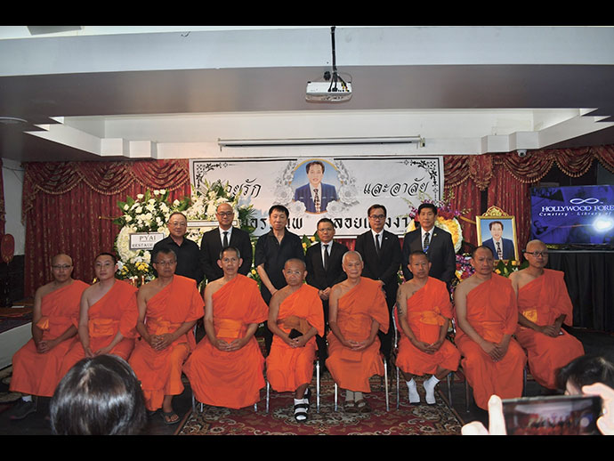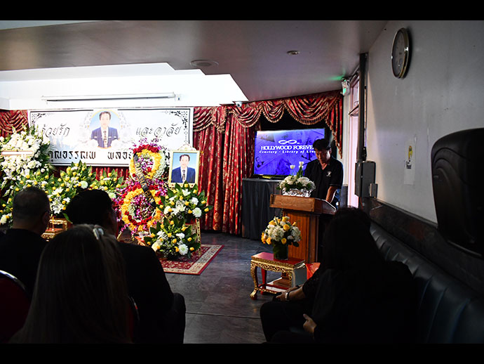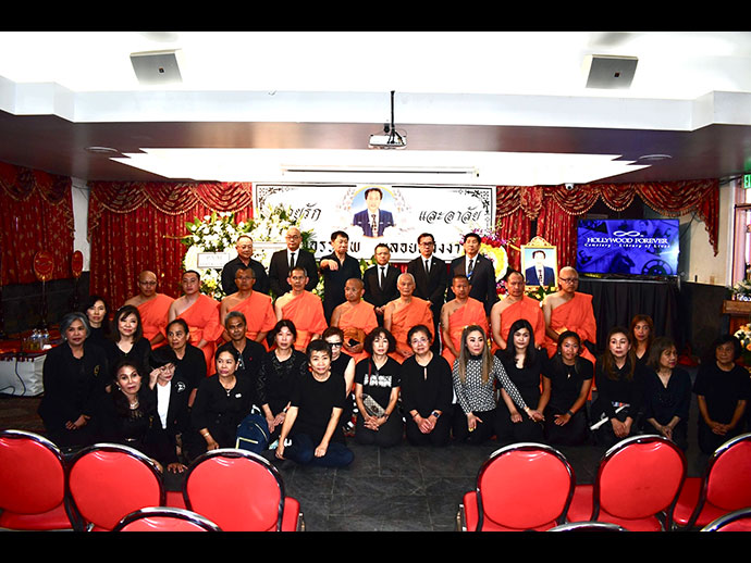 โดยจะมีพิธีสวดพระอภิธรรมตั้งแต่วันที่ 11-13 ก.ค.67 และจะมีพิธีรดน้ำศพ/ฌาปนกิจ ในวันอาทิตย์ที่ 14 ก.ค. 67 เวลา 1.30 PM.ที่สุสาน Hollywood Forever : 6000 Santa Monica Blvd, Los Angeles, CA 90038