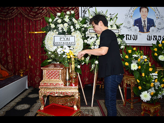ครอบครัว “พลอยแสงงาม” พร้อมด้วยทีมงานผู้บริหารแล็คซีซุเปอร์มาร์เก็ตและญาติพี่น้องร่วมใจกันเป็นเจ้าภาพ จัดขึ้นที่วัดไทยลอสแองเจลิส : 8225 Coldwater Canyon Ave.North Hollywood,CA 91605 เมื่อค่ำวันพฤหัสบดีที่ 11 ก.ค. ที่ผ่านมา นิมนต์พระสงฆ์วัดไทยฯ จำนวน 4 รูป สวดพระอภิธรรมและบังสุกุล โดยมีกงสุลใหญ่ลอสแอนเจลิส นายต่อ ศรลัมพ์ และทีมงานให้เกียรติมาร่วมพิธีบำเพ็ญกุศลในครั้งนี้ด้วย มีญาติสนิทมิตรสหายและท่านที่เคารพนับถือเข้าร่วมพิธีแสดงความเสียใจกันพร้อมหน้า ทางเจ้าภาพขอขอบคุณทุกท่านมา ณ โอกาสนี้