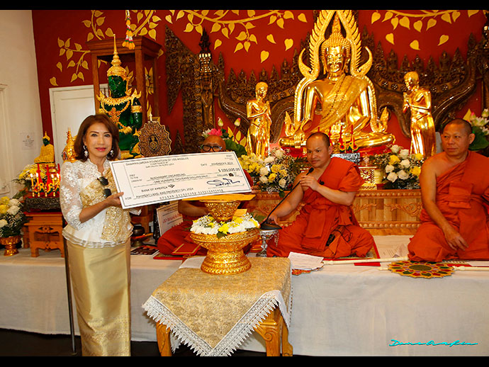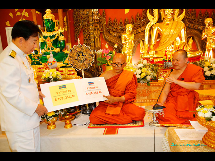 โดยมี คุณสมใจนึก เองตระกูล (อดีตปลัดกระทรวงการคลัง) ปัจจุบันประธานกรรมการบริษัท ทิพยประกันภัย จำกัด “มหาชน” เป็นประธานกฐิน, ประธานร่วม 2 ท่านคือ คุณนุชนาฎ อุงอำรุง(นายกสมาคมไทยแห่งแคลิฟอร์เนียภาคใต้) กับ คุณประนอม ประสารฉ่ำ และมีคุณศรีวงศ์ อาญาสิทธิ์ เป็นประธานผ้าป่าบริวาร, แสดงพระธรรมเทศนา 1 กัณฑ์ โดย พระราชวชิรวิเทศ มีท่านพระครูพิศาลธรรมจารี (เป็นตัวแทนพระสงฆ์ไทย)
