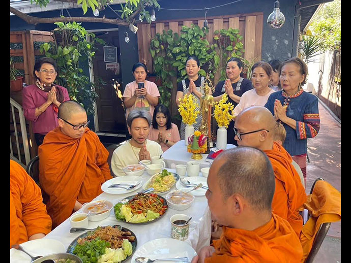 ประมวลภาพ งานทำบุญและเป่าเค้กฉลองวันคล้ายวันเกิด อ.ก้อง จรัสพงษ์ วิจิตรสุนทรกุล เมื่อวันจันทร์ที่ 24 กุมภาพันธ์ 2568 ที่ร้าน The Silver Lake House by Leela Thai โดยนิมนต์คณะสงฆ์จากวัดไทยธรรมจาริกสังฆวิหาร มาสวดพระพุทธมนต์ ฉันภัตตาหารเพล เพื่อเป็นสิริมงคลกับชีวิต มีครอบครัว กัลยาณมิตร และ ผู้ใหญ่ที่เคารพนับถือไปร่วมอวยพรอย่างพร้อมหน้า