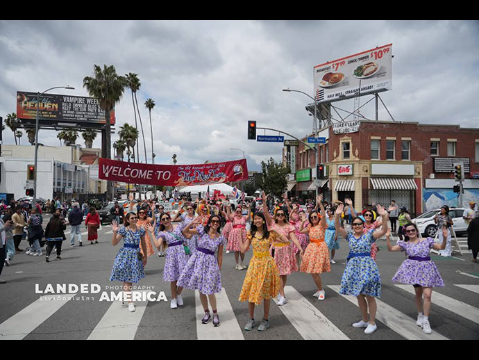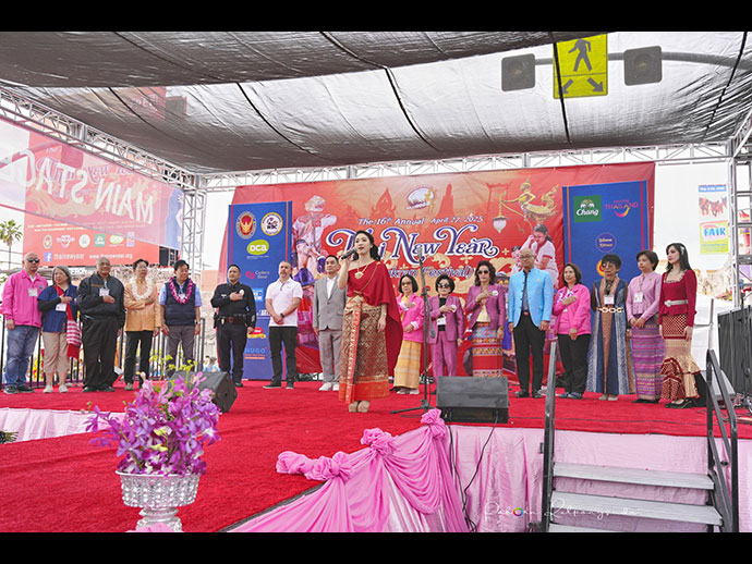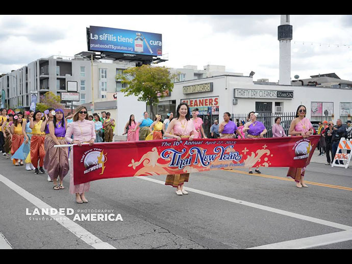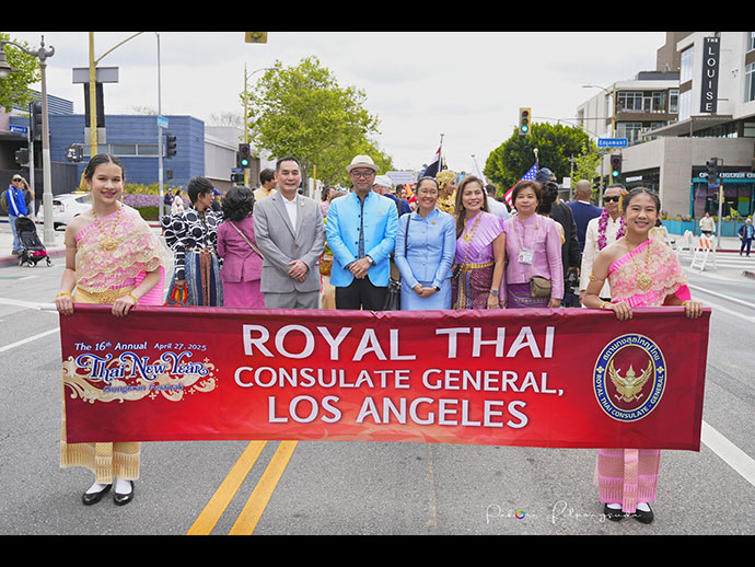 บรรยากาศงานเทศกาลไทยนิวเยียร์สงกรานต์เฟสติวัล (Songkran Thai New Year Festival 2025) ครั้งที่ 16 ณ บริเวณไทยทาวน์ บนถนนถนนฮอลลีวูด เมื่อวันที่ 27 เมษายน 2568 กสญ.ต่อ ศรลัมพ์ กงสุลใหญ่ ณ นครลอสแอนเจลิส ให้เกียรติเป็นประธานเปิดงาน