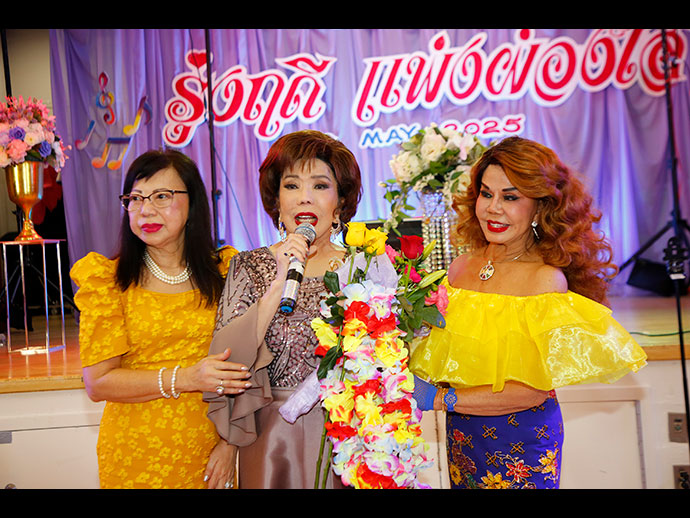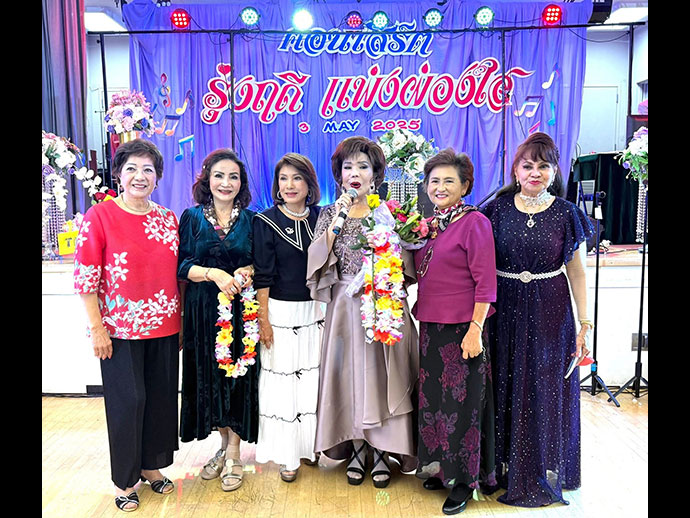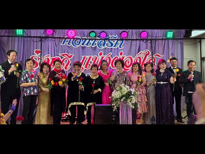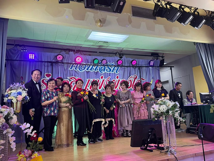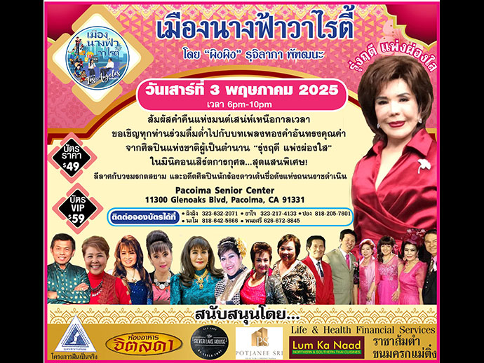 บรรยากาศ งานมินิคอนเสิร์ตการกุศล จากศิลปินแห่งชาติผู้เป็นตำนาน “รุ่งฤดี แพ่งผ่องใส” โดยทีมงาน “นางฟ้า วาไรตี้” นำโดย “ผิงผิง” รุจิลาภา พัฑฒนะ ลีลาศกับวงมรกตสยาม และอดีตศิลปินนักร้องดาวเต้นชื่อดังแห่งถนนราชดำเนิน เมื่อวันเสาร์ที่ 3 พฤษภาคม 2025 ที่ Pacoima Senior Center 11300 Glenoaks Blvd, Pacoima, CA 913319