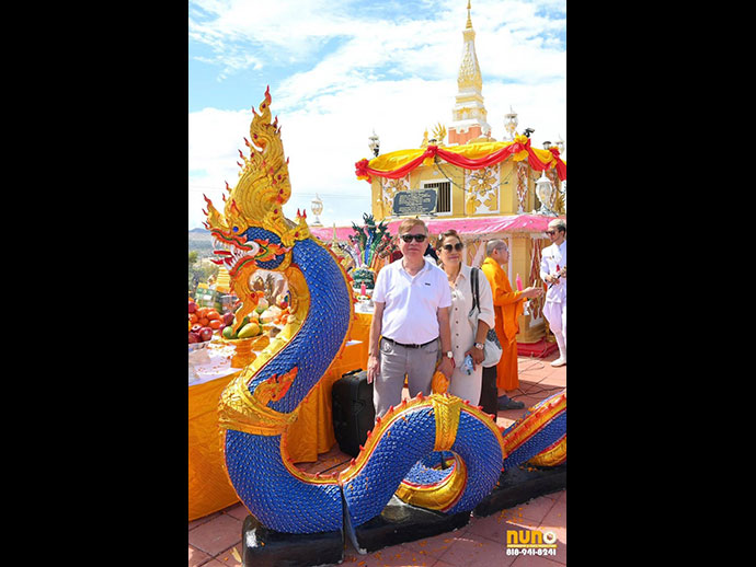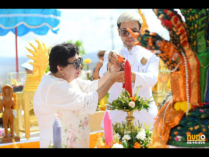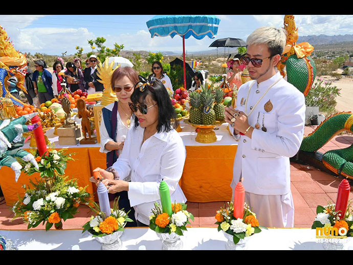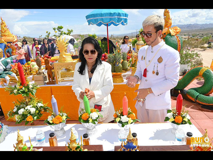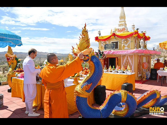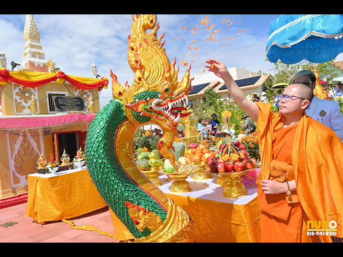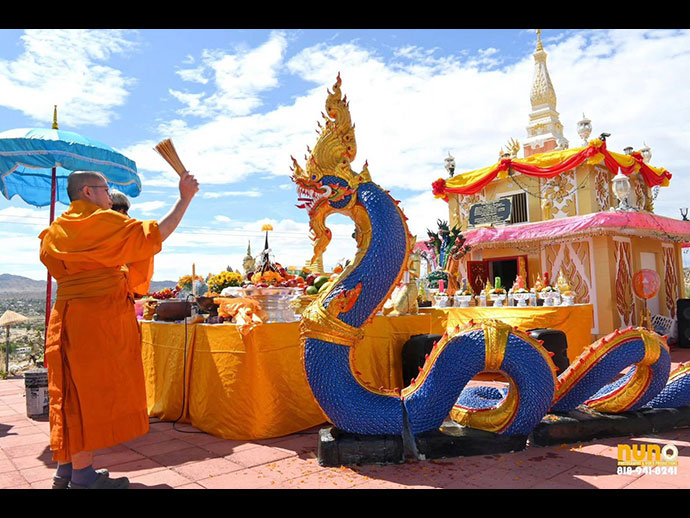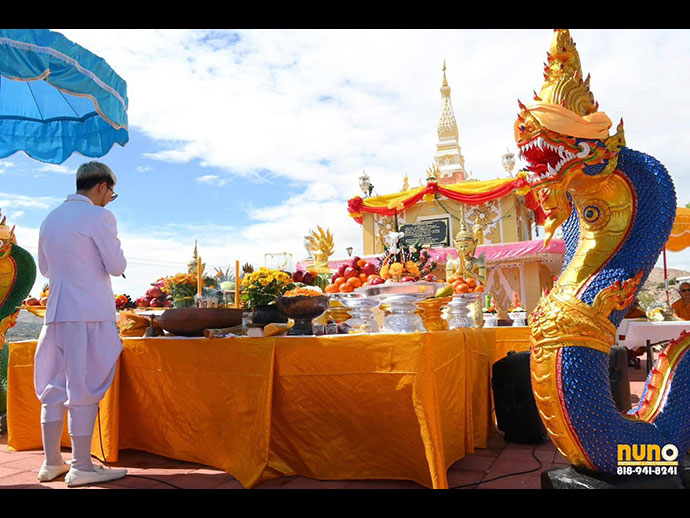 เมื่อวันเสาร์ที่ 27 กันยายน 2568 โดยมี พราหมณ์ก้อง จรัสพงษ์ วิจิตรสุนทรกุล เป็นผู้ทำพิธีทางศาสนาประกอบพิธีบวงสรวง และพระมหาเลอเดช วรวํโส (ป.ธ.9) เจ้าอาวาสวัดพระธาตุพนม อเมริกา เป็นประธานฝ่ายสงฆ์ พร้อมประธานจุดเทียนชัยมหาบารมีศรีสัตตนาคราช บูชาพญานาคทั้ง7ตน ร่วมทำบุญต้นละ $500 ประกอบด้วย ศรีวงศ์ อาญาสิทธิ-ตรีรัตน์ เอี่ยมอุไรรัตน์,พงษ์เดช-รุจา ตุลาภรณ์ และครอบครัว,เจริญพร แฮกเกอร์-โอภาส มะลิพันธุ์,คุณแม่เล็ก สุธีมา เอ็ดมั่น-ใหม่,อ้อย เจียมฤดี-ดีดี้ ศุภมิตร สุขสุจริตกุล,กลุ่มสาวบ้านแต้,ศรีวงศ์ อาญาสิทธิ-ผิงผิงรุจิลาภา พัฑฒนะ-Super Pat-อ.เชน ศิลปี และ สมัย-โอปอล เจ้าภาพก๋วยเตี๋ยว และผู้ดำเนินการติดตั้งองค์พญานาค พราหมณ์ก้อง จรัสพงษ์ วิจิตรสุนทรกุล ได้มีจิตศรัทธา จัดสร้างรูปปั้นพญาสัตตนาคา จำนวน 2 องค์ สูง 2.30 เมตร ยาว 3.30 เมตร และได้อัญเชิญจากประเทศไทยมาประดิษฐานที่วัดพระธาตุพนม อเมริกา วันทำพิธีบวงสรวงมีฝนตกโปรยปรายลงมา และ ช่วงทำพิธีมีปรากฏการณ์“พระอาทิตย์ทรงกลด” เป็นที่อัศจรรย์ใจของทุกๆคน หลังจากเสร็จพิธีได้มีฝนตกลงมาอย่างหนัก ถือเป็นนิมิตมงคลอันงดงามแห่งความอุดมสมบูรณ์ และร่มเย็นเป็นสุข ในการบูชาพญาสัตตนาคาครั้งนี้เปรียบดั่งน้ำทิพย์จากฟากฟ้าหยาดลงมาอวยพร ให้กับผู้เข้าร่วมงานบุญใหญ่ให้โชคดีมีชัย ชีวิตพบแต่ความสุขความเจริญตลอดไป มีคณะสงฆ์จากหลายวัดและสาธุชนจากหลายเมืองเดินทางไปร่วมพิธีศักดิ์สิทธิ์ครั้งนี้อย่างมากมาย