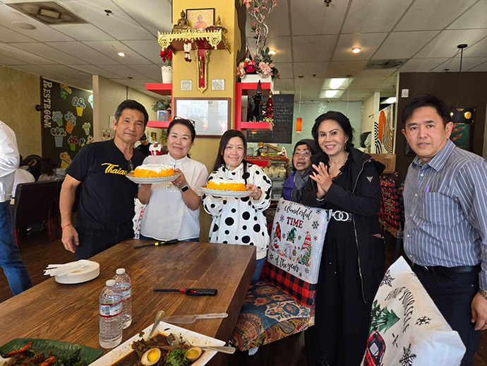 เมื่อวันที่ 8 มกราคม 2569 สองตายาย อุทัย-สินีนารถ กลิ่นมาลัย นิมนต์พระสงฆ์วัดไทยแอลเอ มาสวดพระพุทธมนต์ฉันภัตตาหารเพล ทำบุญวันปีใหม่และทำบุญวันเกิดล่วงหน้าให้กับ เล็ก สินีนารถ เจ้าของร้านฝ่ายหญิง ที่จะครบรอบวันคล้ายวันเกิดในวันที่ 12 มกราคม ที่จะถึงนี้ ที่ร้านราชาส้มตำ ในไทยทาวน์ บนถนนฮอลลีวูด โดยมี ตรีรัตน์ เอี่ยมอุไรรัตน์ นำเค้กวันเกิดจากเบเกอร์ฟิลด์ มาร่วมอวยพร