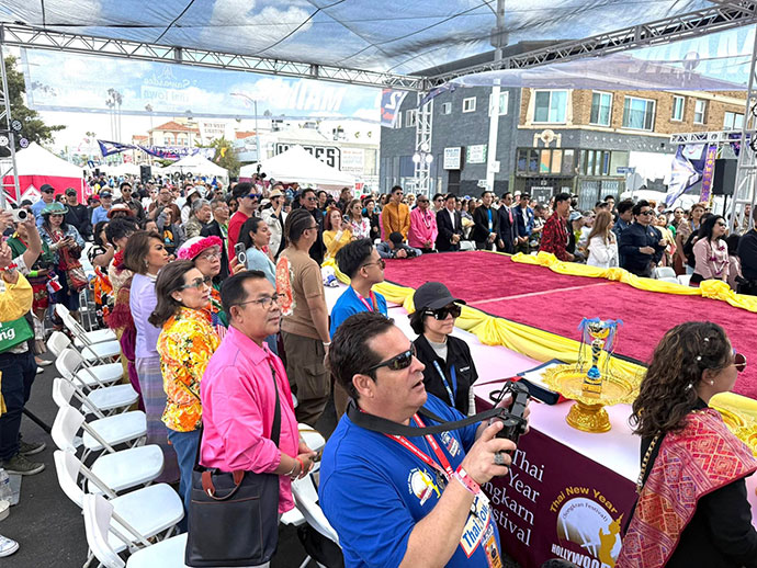 บรรยากาศ งานไทยนิวเยียร์สงกรานต์ 2026 Los Angeles ครั้งที่ 17 ที่ไทยทาวน์ ฮอลลีวูด วันอาทิตย์ที่ 26 เมษายน 2026 ภายใต้ธีม “สวัสดีไทยทาวน์” โดยมีท่านต่อ ศรลัมพ์ กงสุลใหญ่ ณ นครลอสแอนเจลิส ให้เกียรติมาเป็นประธานเปิดงานฯ พร้อมกับแขกวีไอพี มีเจ้าหน้าที่รัฐและผู้แทนจากหน่วยงานต่างๆ มาร่วมงานเป็นจำนวนมากกว่า 200,000 คน ขอแสดงความยินดีกับทุกท่านที่เกี่ยวข้องกับการจัดงานและชุมชนไทยในลอสแอนเจลิส ที่ทำสำเร็จกับการสร้างสถิติโลก ขายผัดไทย 1,337 ออเดอร์ ภายใน 1 ชั่วโมง โดยตัวแทนจาก Guinness world Records ประกาศอย่างเป็นทางการเมื่อเวลาบ่ายสอง ของวันที่ 26 เมษายน 2026 (ภาพ/ข่าว. ดอน เจริญสุดใจ “ผู้สื่อข่าวพิเศษ นสพ.ไทยแอลเอ.”)