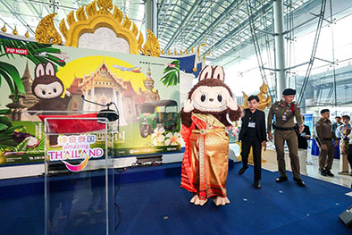การมาของมาสคอต'ลาบูบู้' เพื่อเตรียมเฉลิมฉลองความสัมพันธ์ไทยจีนครบ 50 ปี ภายใต้โครงการ “ลาบูบู้เที่ยวไทย” ต้อนรับมาสคอตลาบูบู้จากกรุงปักกิ่ง สาธารณรัฐประชาชนจีนสู่ท่าอากาศยานสุวรรณภูมิ ประเทศไทย เพื่อจัดทำคลิปวิดีโอประชาสัมพันธ์เที่ยวไทยตามรอยลาบูบู้