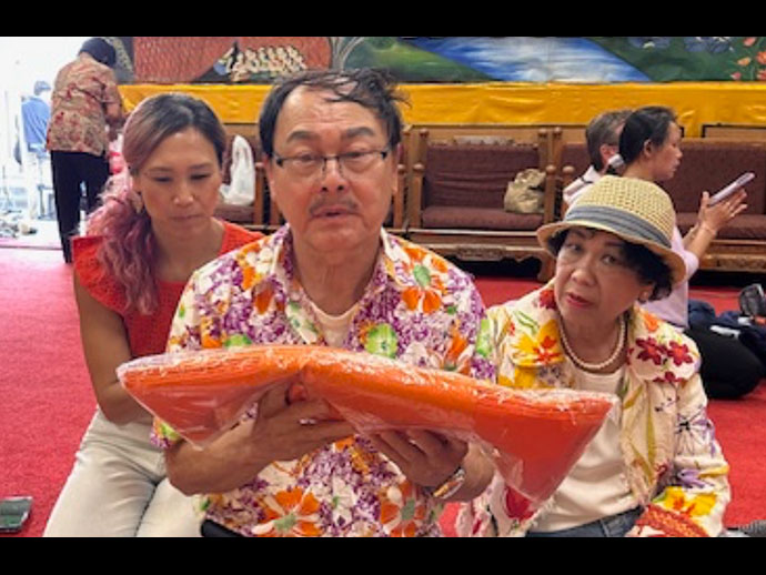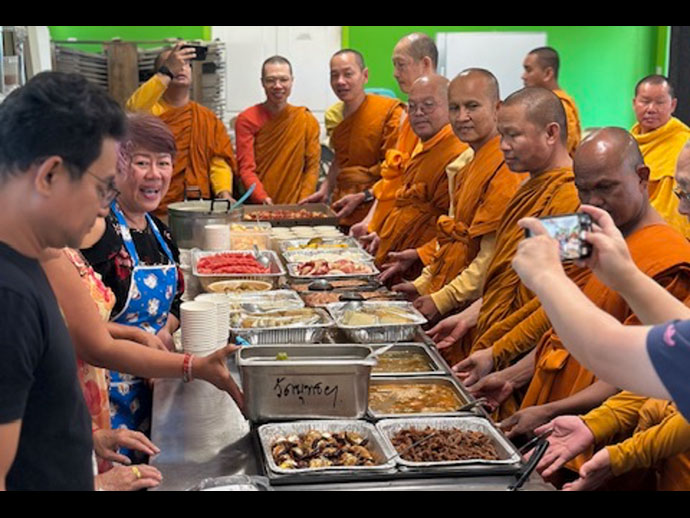 1.พระปลัดสมชาย ธมฺมสํวโร บริจาค 100 คุณแม่สมพร บริจาค 300 เหรียญคุณชลธิดา อุทิศให้คุณดอน เจ วิลเลี่ยม 500 เหรียญ คุณจุไรพร ศิลาวุฒิกุล 100 เหรียญ คุณศศิธร เวนิงเจอร์ พร้อมกับครอบครัว 100 เหรียญ คุณศิริพรรณ สิงหรัตนกุล พร้อมกับครอบครัว 100 เหรียญ คุณเจนจิรา ชวลิตธำรง อุทิศให้คุณฑิฆัมพร ชวลิตธำรง 200 เหรียญ คุณประภาวดี ประภาตนันท์ พร้อมกับตรอบครัว 100 เหรียญ คุณพรนิชา ดัดเลย์ พร้อมกับครอบครัว 200 เหรียญ คุณแอ๊ด ยิ้มเป็นสุข 100 เหรียญ คุณ Kanjina kongrith stone 100 เหรียญ คุณ John Axtell 100. เหรียญ คุณKulwadee Axtell 100 เหรียญ คุณ Logan Ploy praewa Axtell 20 คุณ Smith. Family 100. เหรียญ คุณ Aj Smith 29. คุณกุลปริยา - คุณแกรี่ จอห์นส 200 เหรียญ นอกจากนี้ยังมีร้านอาหารไทยร่วมด้วยช่วยกัน นำอาหารมาถวายเป็นจำนวนมากพอมากพอสมควร