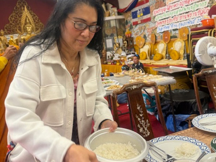 @@@.คุณ Alice wong เจ้าของธุรกิจ ร้านอาหาร Hong Kong lounge flower restaurant ตั้งอยู่บนถนน Millbrae Ave พร้อมกับครอบครัว ได้มีจิตศรัทธาขอถวาย ท่านท้าวมหาพรหมปรเมศร์ ที่ตั้งอยู่ด้านหน้าร้านอาหาร เป็นพระพรหมองค์แรกของนครซานฟรานซิสโก และคุณAlice เป็นเจ้าของธุรกิจ ร้านอาหารจีนที่มีชื่อเสียงโด่งดัง ในยุค 36 ปีที่ผ่านมาลูกค้าแน่นทุกวันจนไม่มีเวลาใช้เงิน เป็นร้านขนาดใหญ่ ยุคนั่น สมัยนั้น คุณ Alice ได้เล่าว่า ได้เดินทางไปประเทศไทย ถวายสักการะบูชาเพราะมีความศรัทธานับถือท่านท้าวมหาพรหมอย่างลึกซึ้ง ตั้งใจว่า เมื่อได้เปิดร้านอาหารจะได้อัญเชิญนำท่านท้าวมหาพรหมมาประทับไว้ที่ร้าน เมื่อความตั้งใจเป็นจริงจึงได้อัญเชิญและสร้างฐานประทับไว้หน้าร้าน ตั้งแต่ปี 1989 โดยกราบอาราธนา พระเดชพระคุณพระมงคลเทพโมลี อดีตเจ้าอาวาสวัดมงคลรัตนาราม เมืองเซ้าส์ซานฟรานซิสโก ปัจจุบันวัดมงคลรัตนาราม ได้โยกย้ายมาตั้งวัดแห่งใหม่ที่เมืองเบอร์คโดยการแนะนำของคุณประทุม ซึ่งมีบ้านใกล้วัดสมัยนั้น หลวงพ่อพระมงคลเทพโมลีพร้อมกับคณะสงฆ์หลายรูปมาประกอบพิธีบวงสรวง ด้วยข้าวตอกดอกไม้ ผลไม้มงคล9 ชนิด มีพิธีพราหมณ์ อัญเชิญเทพยดามาร่วมในพิธี กิจการเจริญก้าวหน้าอย่างดียิ่งมาจนถึงเกือบ 40 ปี จนกระทั่งเกิดโควิด 19 ธุรกิจทางชะลอตัว ปิดบ้าง เปิดบ้าง รอดูจังหวะ ด้วยอายุที่มากขึ้นตามลำดับ จึงได้ปรึกษาห้างหุ้นครอบครัว ตัดสินใจเลิกกิจการและขายกิจการพร้อมที่ดิน เพื่อให้คนรุ่นใหม่ดำเนินรอยตามสืบต่อไป คุณ Alice Wong ได้เล่าไปน้ำตาซึมไปด้วย ที่สำคัญไปกว่านั้น คือ ท่านท้าวมหาพรหมปรเมศร์ ที่ครอบครัวและบุคคลทั่วไปเคารพนับถือ ที่อัญเชิญมาจากประเทศไทย เกือบ 40 ปี จะอัญเชิญไปไว้ที่ไหนอย่างไร จึงได้ปรึกษาคุณเมย์ เจ้าหน้าที่จัดซื้อขายอสังหาริมทรัพย์และได้ประสานไปที่วัด ท่าน ดร.พระครูวรสิทธิวิเทศ เจ้าอาวาสวัดพุทธประทีป ซานฟรานซิสโก จึงนัดแนะ กับ Alice Wong เจ้าของพื้นที่ กราบอาราธานาท่าน ไปดูสถานที่ พระครูวรสิทธิวิเทศจึงอนุญาตให้อัญเชิญท่านท้าวมหาพรหมปรเมศร์มาประทับที่หน้าวัดพระพุทธประทีป ซานฟรานซิสโก เพื่อให้บุคคลที่เคารพนับถือได้เดินทางมาถวายสักการะบูชาอย่างมีความสุขใจ ใคร ใคร่จะขอพร ใครใคร่จะอธิษฐานอย่างไร สุดแล้วแต่ ทุกอย่างจะได้สำเร็จสมความปรารถนาทุกประการ ตามที่ทุกคนได้สำเร็จกันมาแล้ว ทางด้าน ดร.พระครูวรสิทธิวิเทศ เจ้าอาวาสวัดพุทธประทีปซานฟรานซิสโก กล่าวว่า ขออนุโมทนา คุณ Alice Wong มอบถวายท่านท้าวมหาพรหมปรเมศร์ องค์แรกของนครซานฟรานได้อัญเชิญมาประทัป ที่หน้าวัด จะมีพิธีบวงสรวงแล